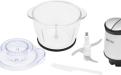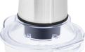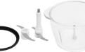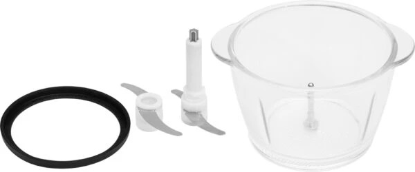 Центральним елементом цього подрібнювача є прозорий скляний контейнер об'ємом 1,5 літра, який дозволяє обробляти більші порції інгредієнтів одночасно. Використане скло не тільки гігієнічне та легко миється, але й, завдяки своїй прозорості, дає ідеальний огляд процесу подрібнення. Ви можете безпечно мити контейнер у посудомийній машині, що значно спрощує обслуговування.
