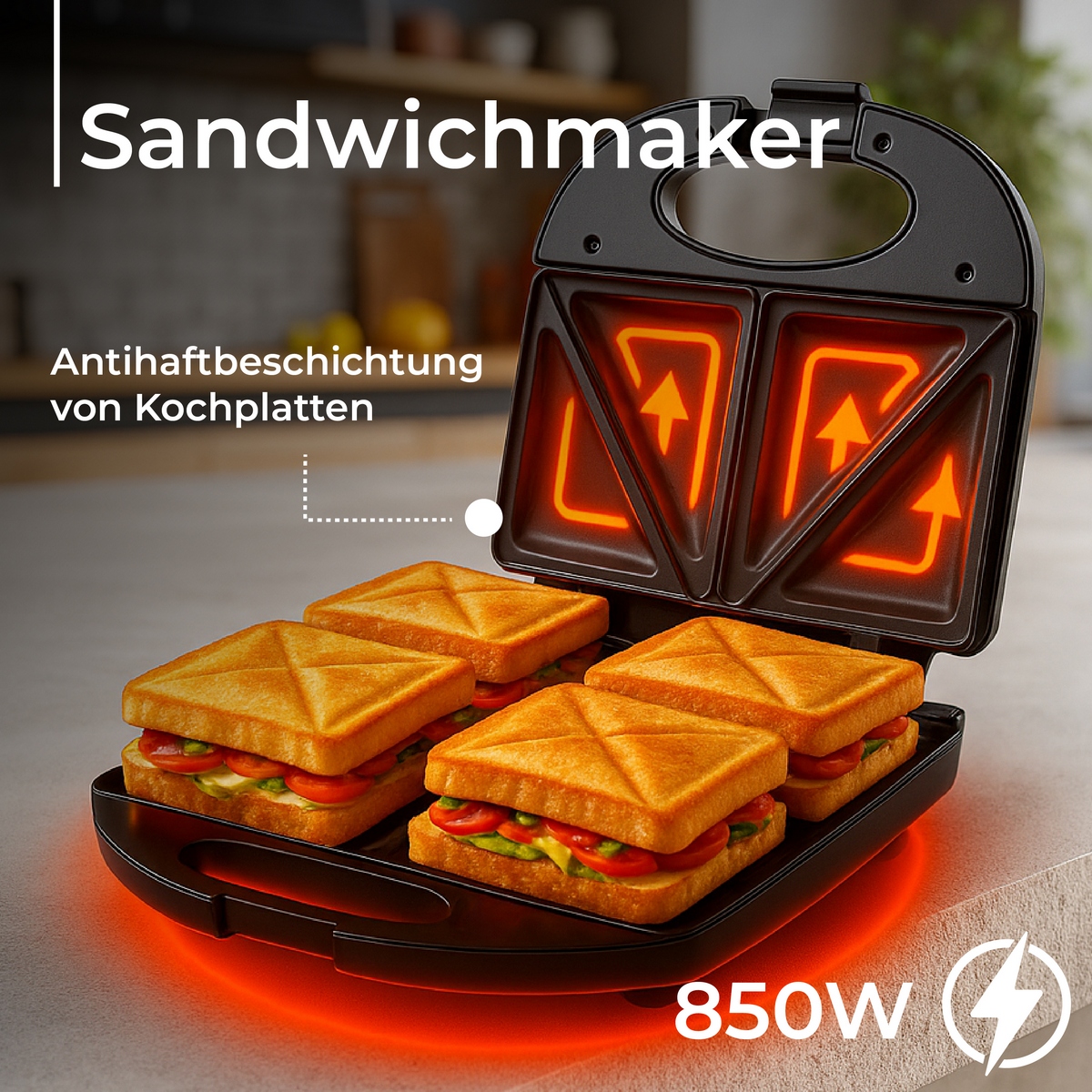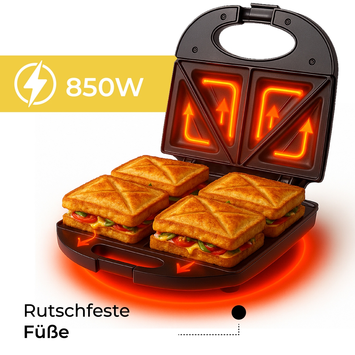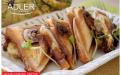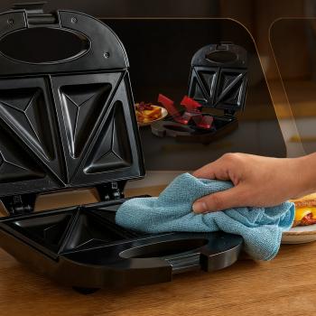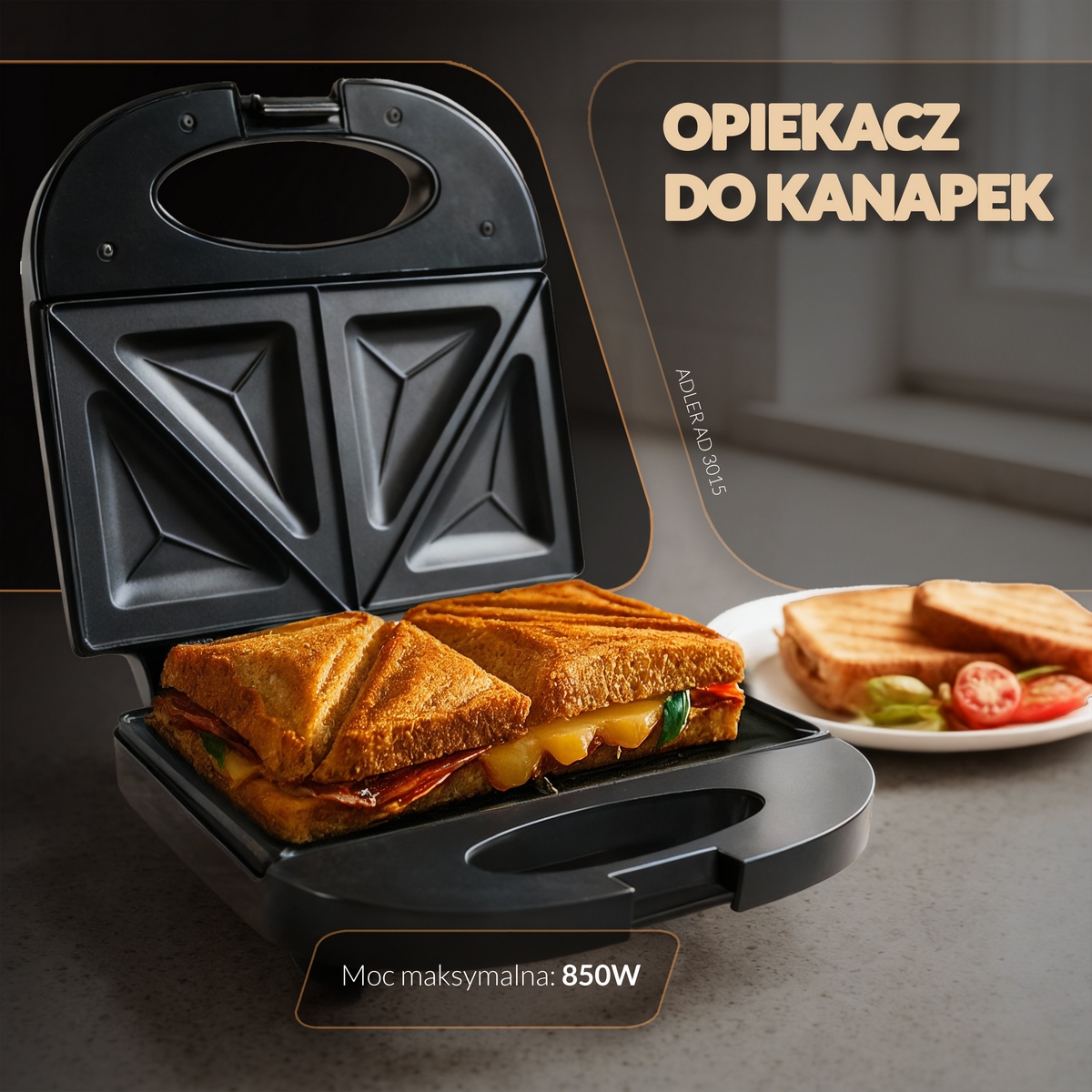 Тостер для бутербродів Adler AD 3015, дизайн якого міг би надихнути виробників шкіряних сумок, але справжнє призначення якого — приготування смачних і хрустких бутербродів. Завдяки максимальній потужності 850 Вт він швидко підсмажує бутерброди, але не підпалює їх. Він також безпечний і стійко стоїть на прилеглих до підлоги нековзних ніжках. Підходить для всіх любителів гарячих і хрустких бутербродів.