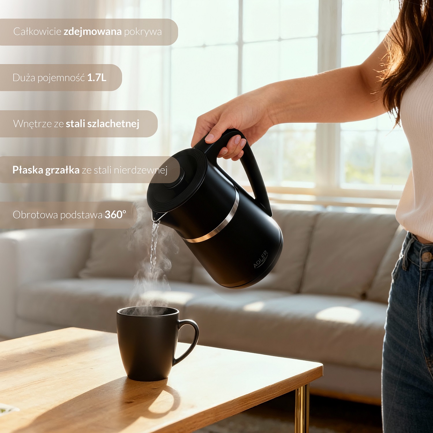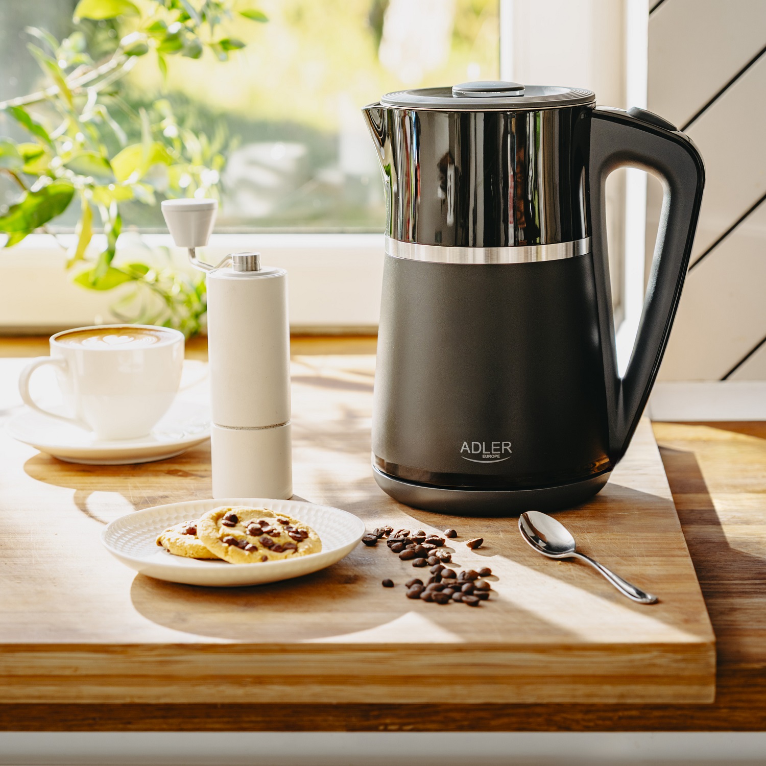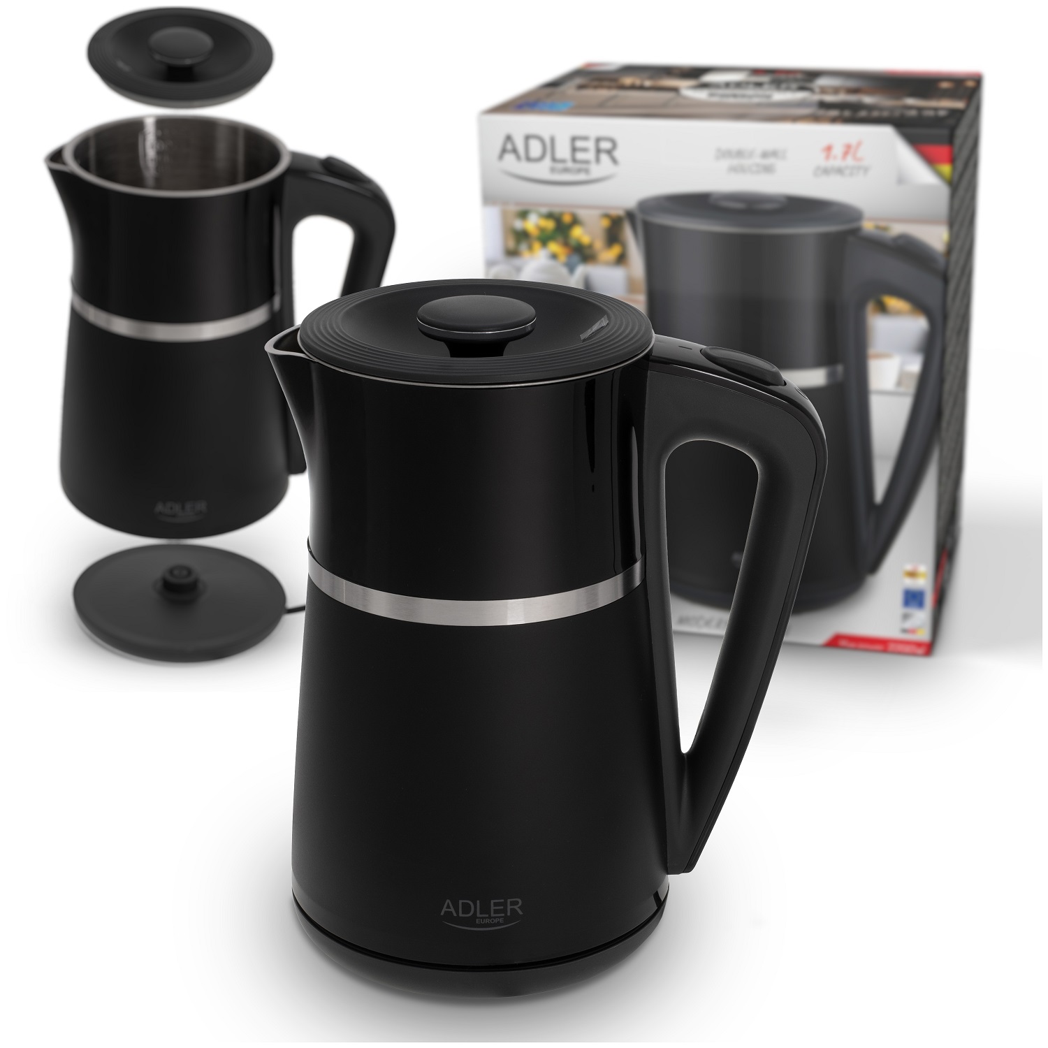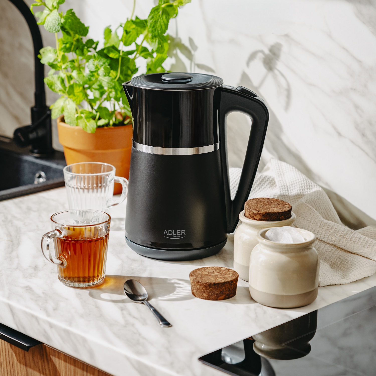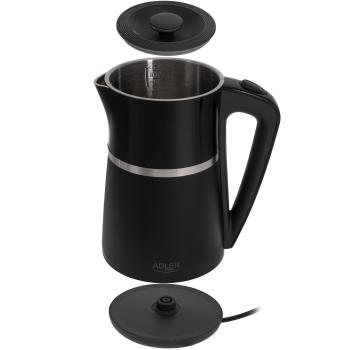 Огляд Електрочайник Adler AD 1355 black 1,7 л | Внутрішня частина з нержавіючої сталі | Подвійні стінки
