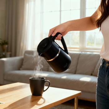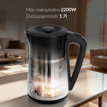 Електричний чайник Adler AD 1355 black - це поєднання сучасного дизайну, безпеки та ефективності. Чайник місткістю 1,7 л, з внутрішньою частиною з нержавіючої сталі та міцною подвійною стінкою, забезпечує безпечне використання та довше зберігає температуру води. Ідеально підходить для щоденного використання в будь-якій кухні.
