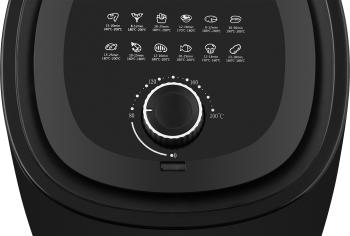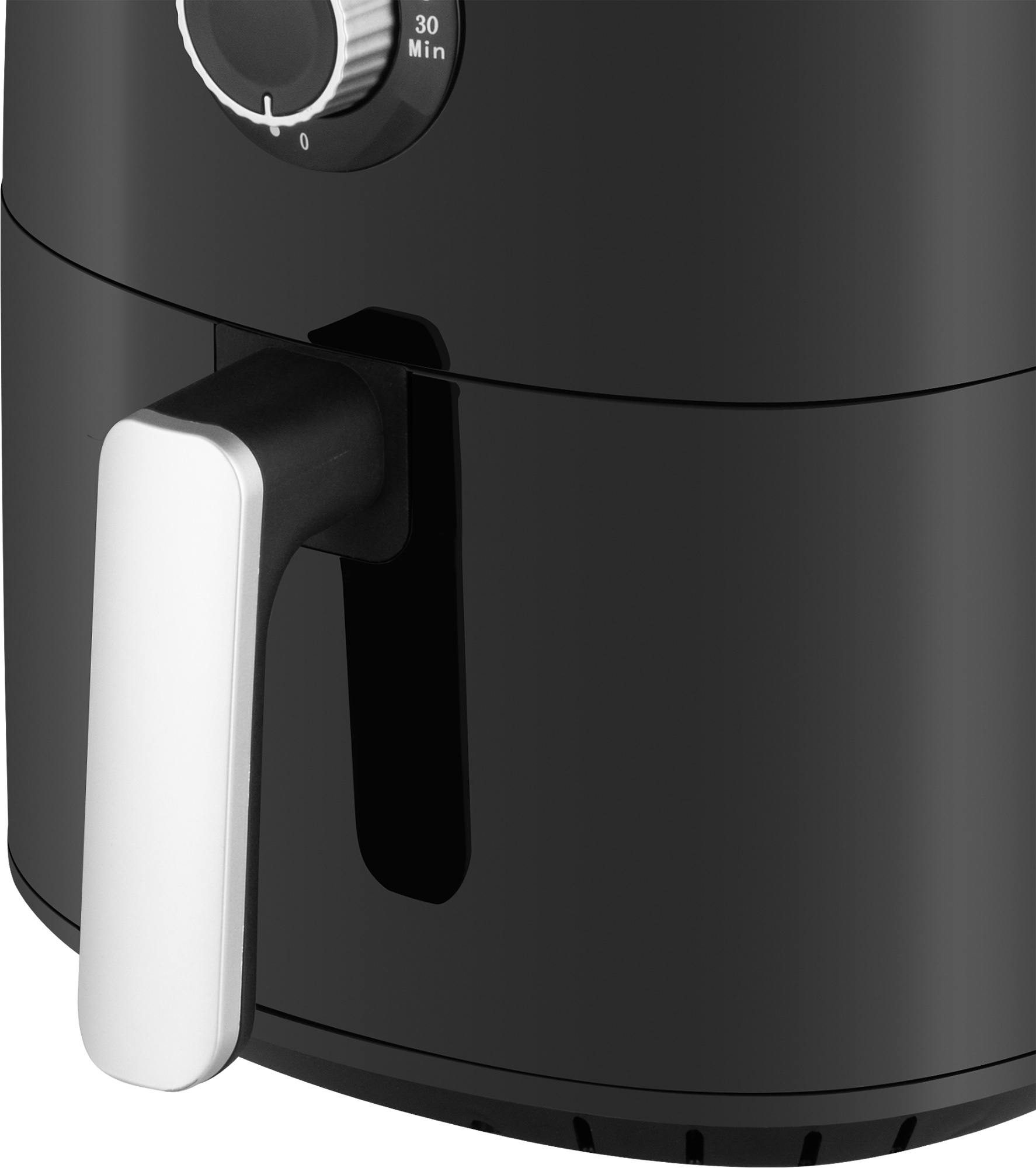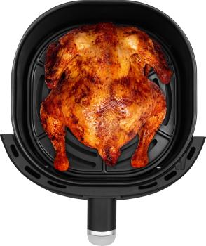 Компактний дизайн з розмірами 32,8 × 31,7 × 25 см і позачасовий вигляд з чорно-сріблястим покриттям. Це властивості, які роблять цю фритюрницю з гарячим повітрям приладом, якому просто неможливо встояти. Вона не займе зайвого місця на кухні, а завдяки своєму елегантному зовнішньому вигляду чудово впишеться серед інших приладів та в будь-який інтер'єр. Але найголовніше, звичайно, це її надійність і чудова функціональність – чи готуєте ви традиційні картопляні фрі, хрустке м'ясо, запечені овочі або мафіни, вона дозволить вам готувати смачно, швидко, здорово і без зайвих зусиль.