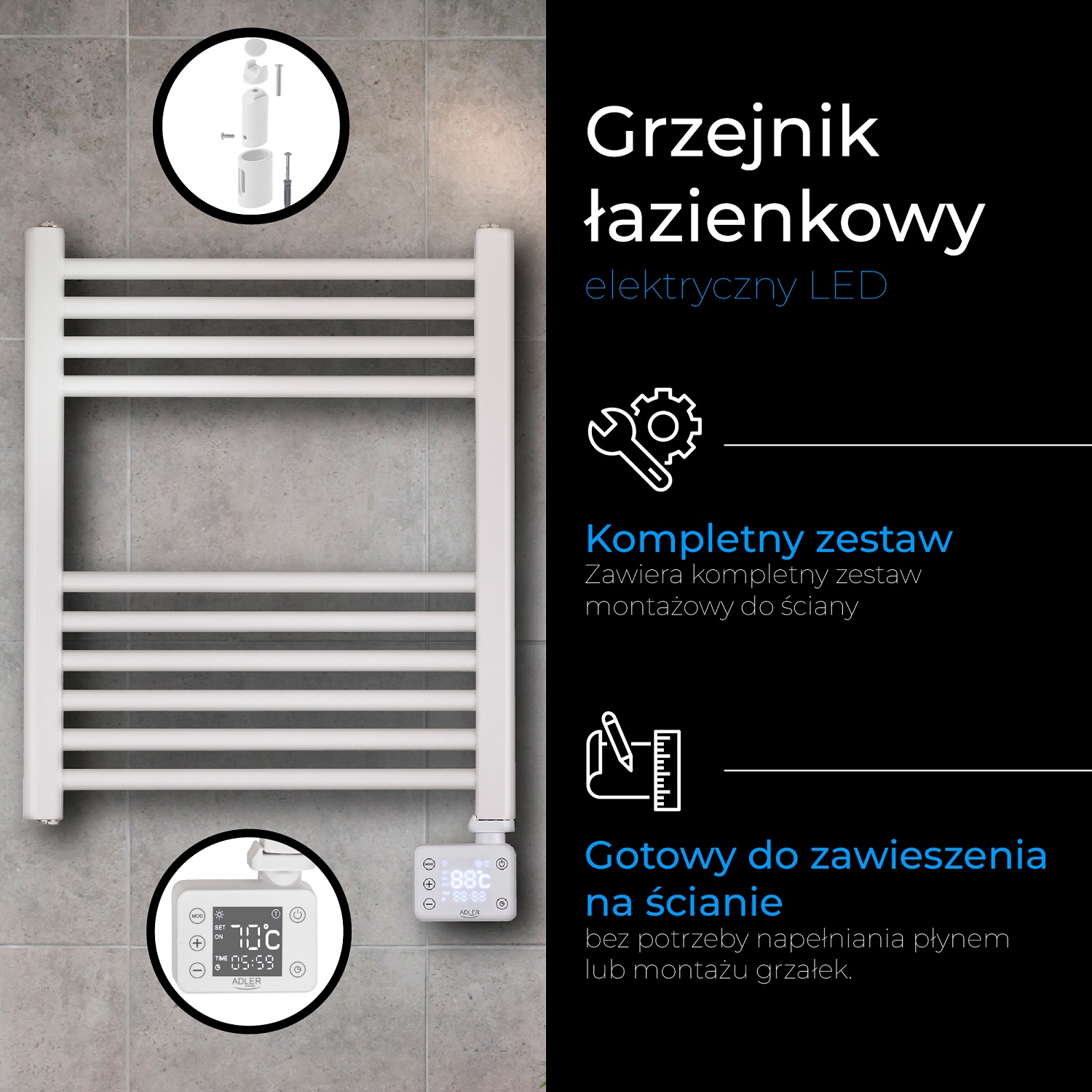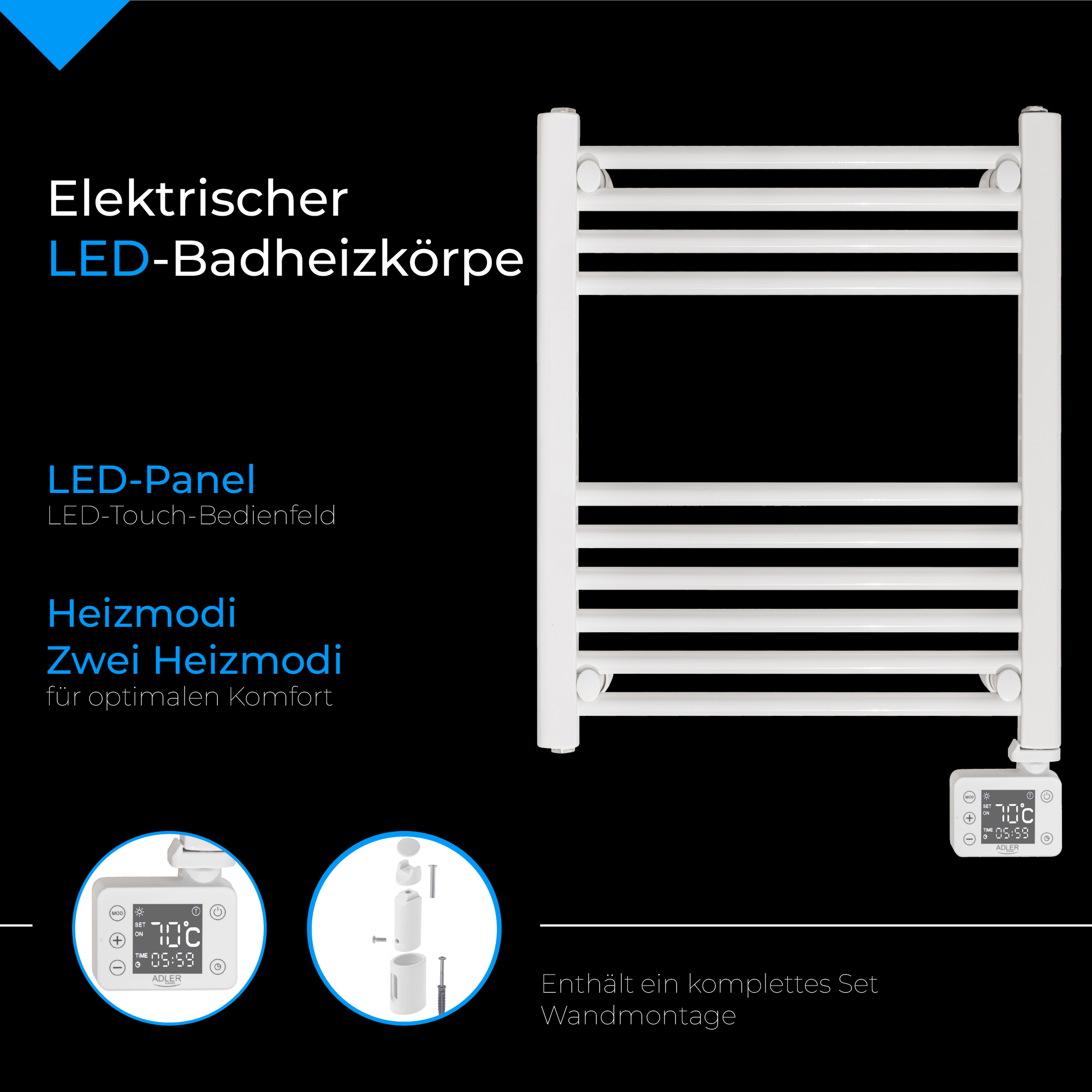 Електричний світлодіодний радіатор для ванної кімнати Adler 7823 розроблений для забезпечення ефективних рішень для опалення та сушіння вашої ванної кімнати, гарантуючи комфорт та зручність завдяки зручним функціям та надійній конструкції.