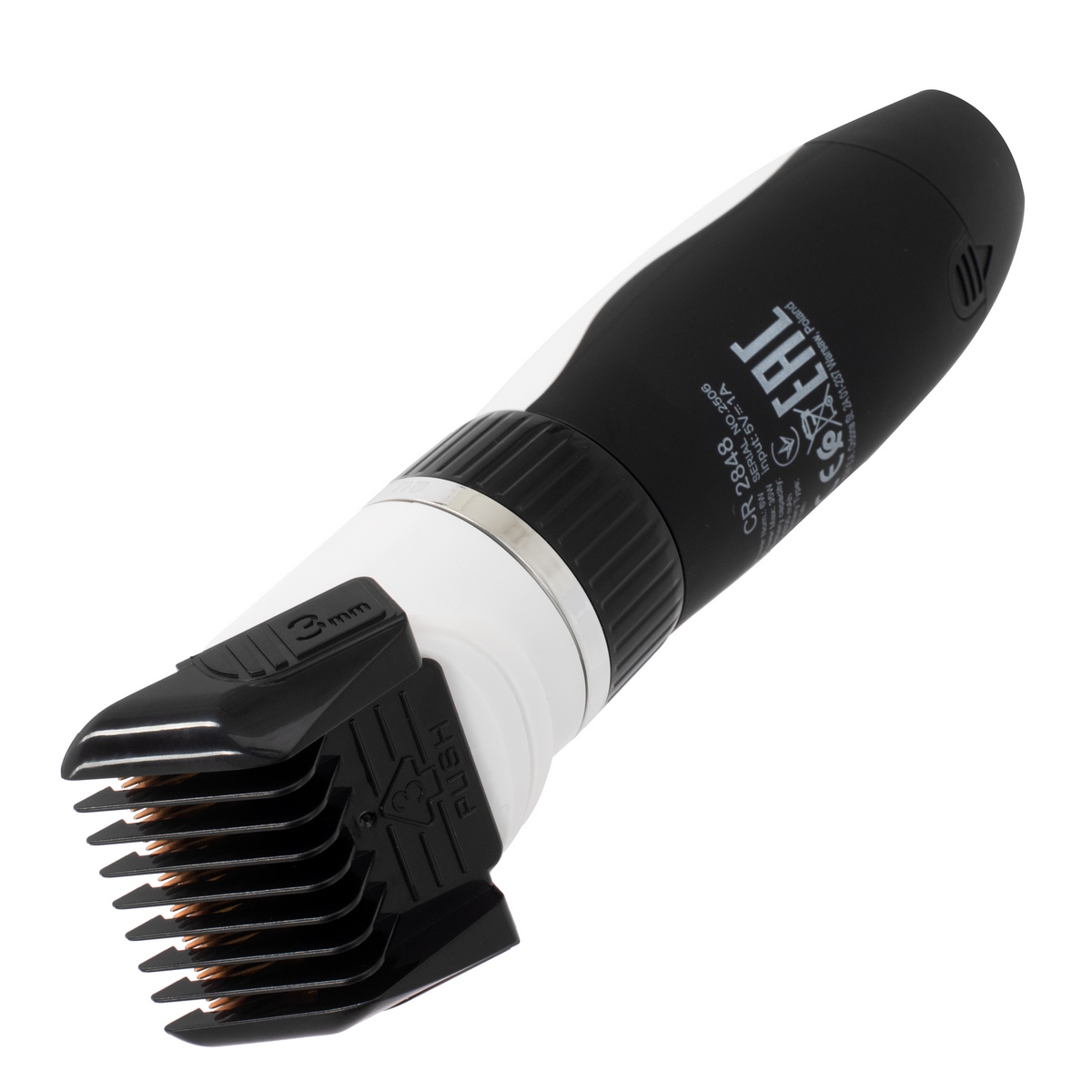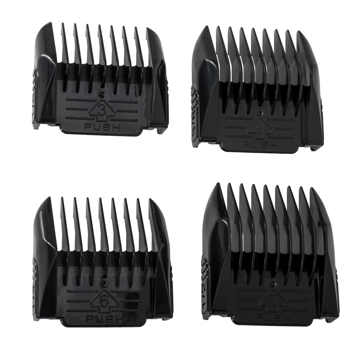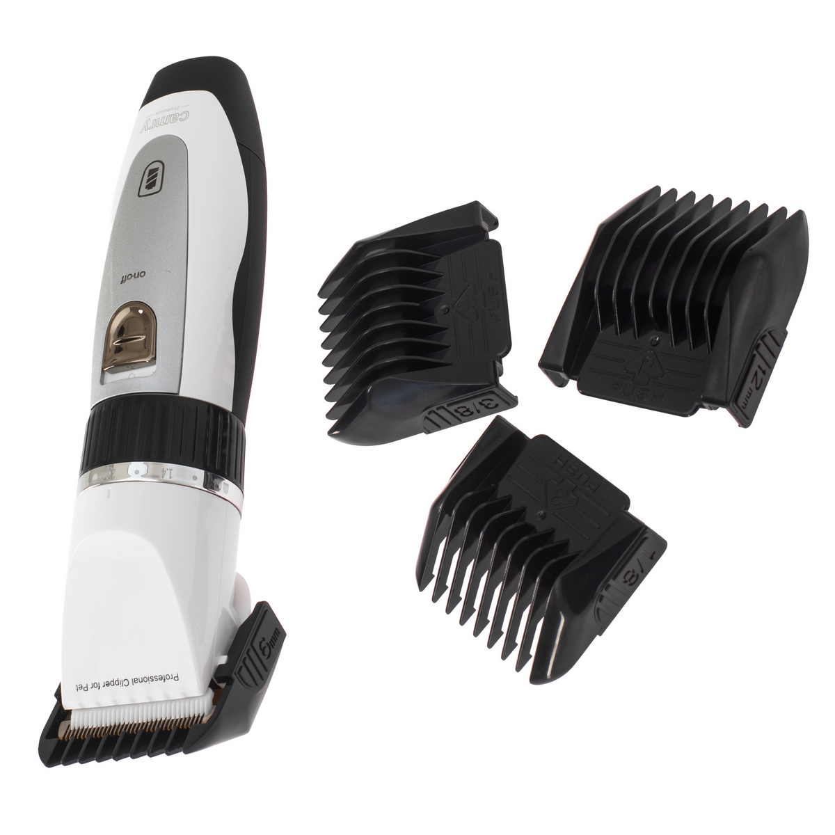 Поворотне кільце регулювання та чотири змінні гребінці (3, 6, 9, 12 мм) дозволяють точно підібрати довжину відповідно до породи, типу шерсті та бажаного стилю.