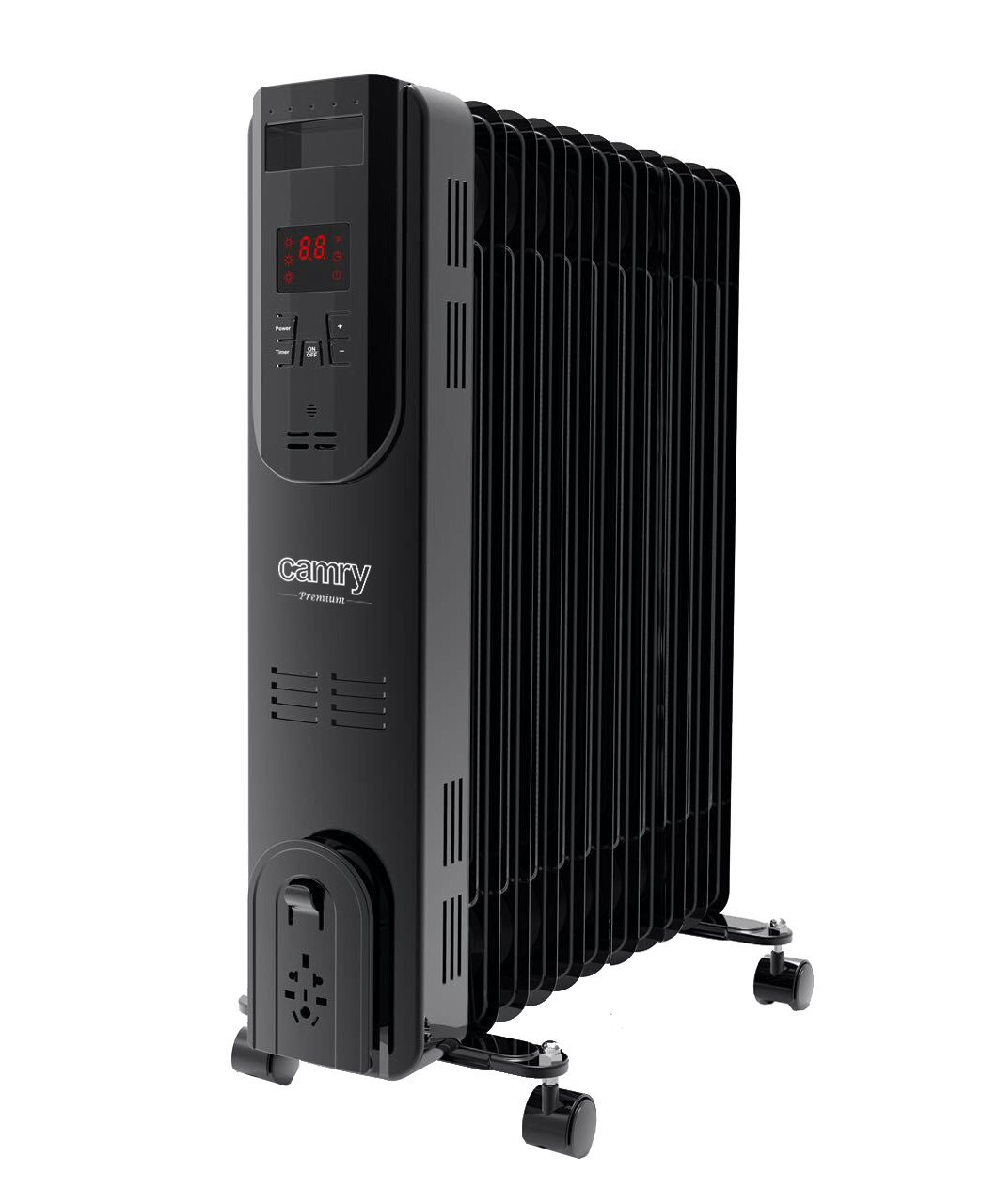 Ефективний оливний обігрівач Camry CR 7813 з пультом дистанційного керування та чітким LED-дисплеєм. Дозволяє додатково обігріти приміщення, в якому немає радіаторів або вони недостатньо ефективні. Незамінний під час аварії системи опалення. Обігрівач дає можливість регулювати температуру в діапазоні 15°C - 35°, працює на 3 рівнях потужності. Обігрівач автоматично підбирає споживання енергії до встановленої температури нагрівання. Для безпеки використання пристрій оснащений захистом від перегріву. Обігрівач виконаний в елегантному стилі, завдяки чому його можна встановити в місці прийому гостей у будинку або клієнтів в офісі. Пристрій має пульт дистанційного керування. Версія CR 7813 має 11 ребер нагріву і потужність 2500 Вт.