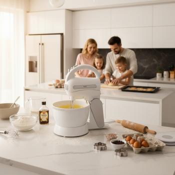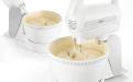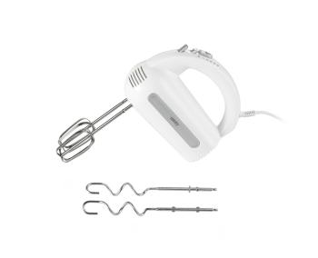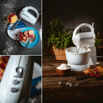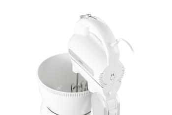 Треба визнати, що домашня випічка набагато здоровіша за магазинну, і немає нічого приємнішого, ніж запах печеного тіста, що розноситься по всій квартирі! Для її приготування зазвичай потрібно багато посуду та столових приборів, але можна полегшити собі приготування улюблених тортів і печива! Пропонований нами міксер — це прилад, який буде добре виглядати в будь-якій кухні. Білий корпус та мішалки і віночки з нержавіючої сталі також легко миються. Корпус достатньо протерти вологою ганчіркою, а потім витерти насухо. Мішалки можна мити у воді з додаванням миючого засобу для посуду. Те, що в комплекті є два типи мішалок, не тільки полегшить збивання піни для безе, але й допоможе замісити пісочне тісто! Міксер дозволяє працювати на п'яти різних швидкостях, завдяки чому його можна використовувати для збивання кремів, піни з білків або збитих вершків, а також для змішування сухих інгредієнтів, необхідних, наприклад, для приготування хліба.