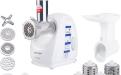 За допомогою якісного двостороннього ножа з нержавіючої сталі та трьох різних дисків (2,7мм, 4мм, 8мм) ви зможете легко перемолоти м'ясо, рибу, овочі, мак, панірувальні сухарі та інші продукти. Прогумовані ніжки міцно утримують прилад на місці, знижують вібрацію, зменшують шум і запобігають переміщенню м'ясорубки під час роботи. М'ясорубка оснащена запобіжною муфтою, що захищає двигун від пошкодження блокування.