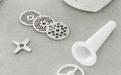 У комплект м'ясорубки входить насадка-овочерізка та чотири види барабанів з нержавіючої сталі.