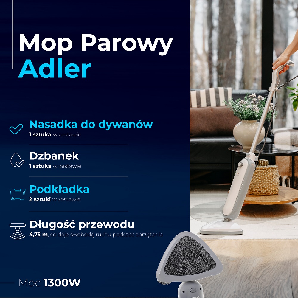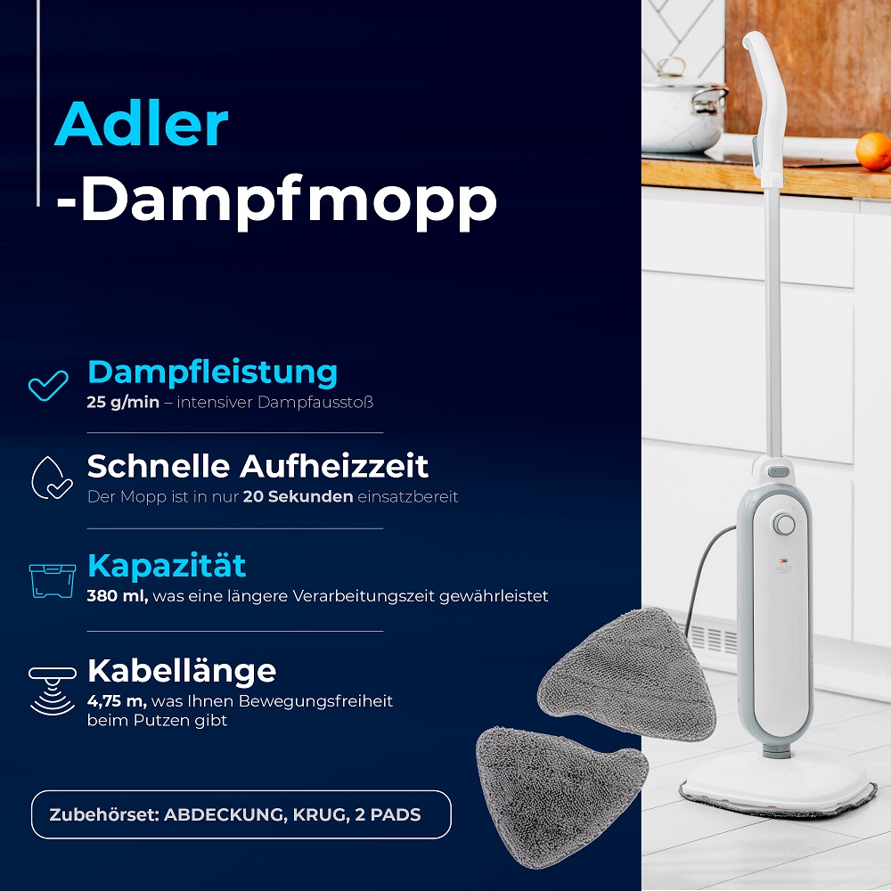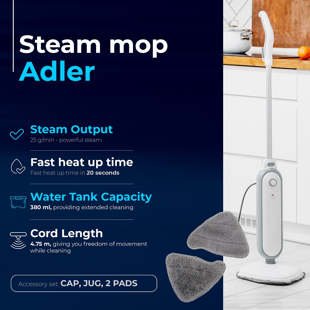 Парова швабра Adler AD 7057 – це пристрій, який дозволяє глибоко і гігієнічно чистити підлоги, усуваючи забруднення і бактерії без використання хімічних засобів. Завдяки потужності 1300 Вт і швидкому нагріванню швабра готова до роботи всього за 20 секунд, що робить її ідеальною для щоденного прибирання.
