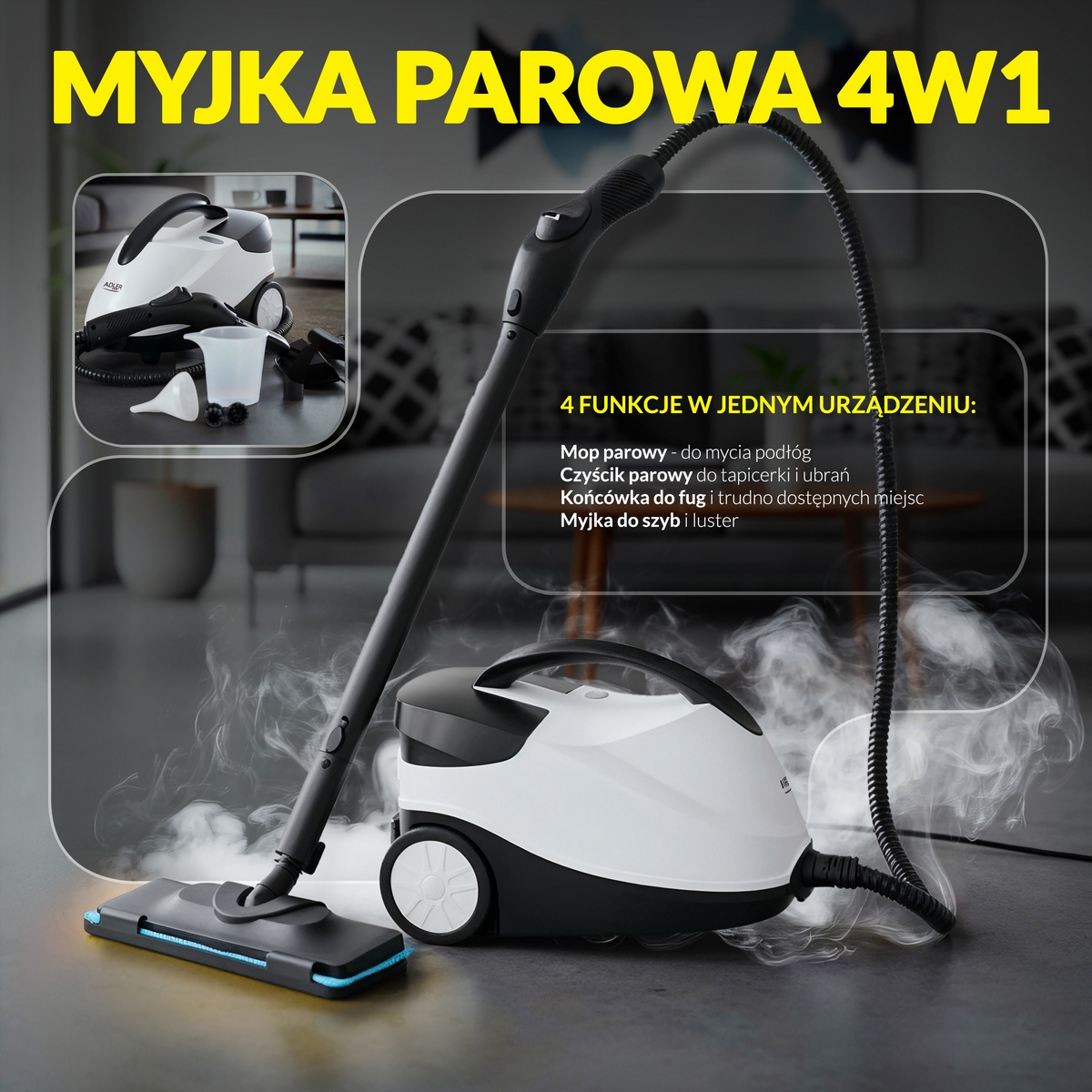 Огляд Парова мийка Adler AD 7070 4в1 | Парова швабра | Чистильник для оббивки | Мийка для вікон |