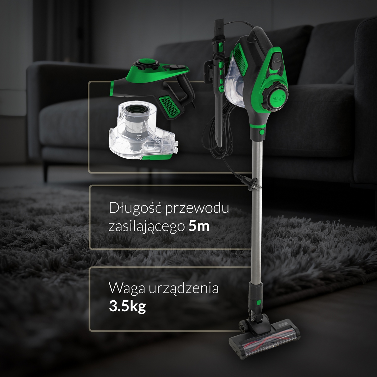 Технічні характеристики Вертикальний пилосос Adler AD 7083 green