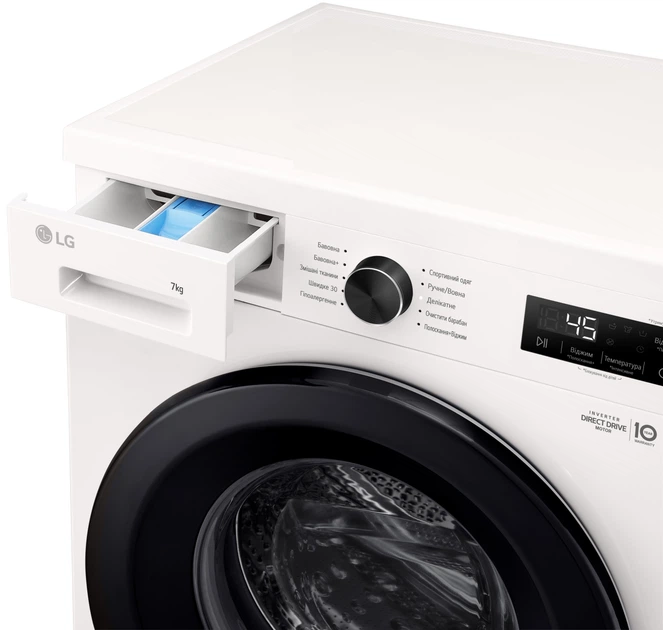 Компанія LG окрім повної гарантії на продукт терміном 12 місяців зобов’язується безкоштовно надавати певний перелік деталей для подальшої заміни. Для пральних машин LG ці зобов’язання поширюються на окремі деталі інверторного двигуна з прямим приводом із системою Inverter Direct Drive*.
