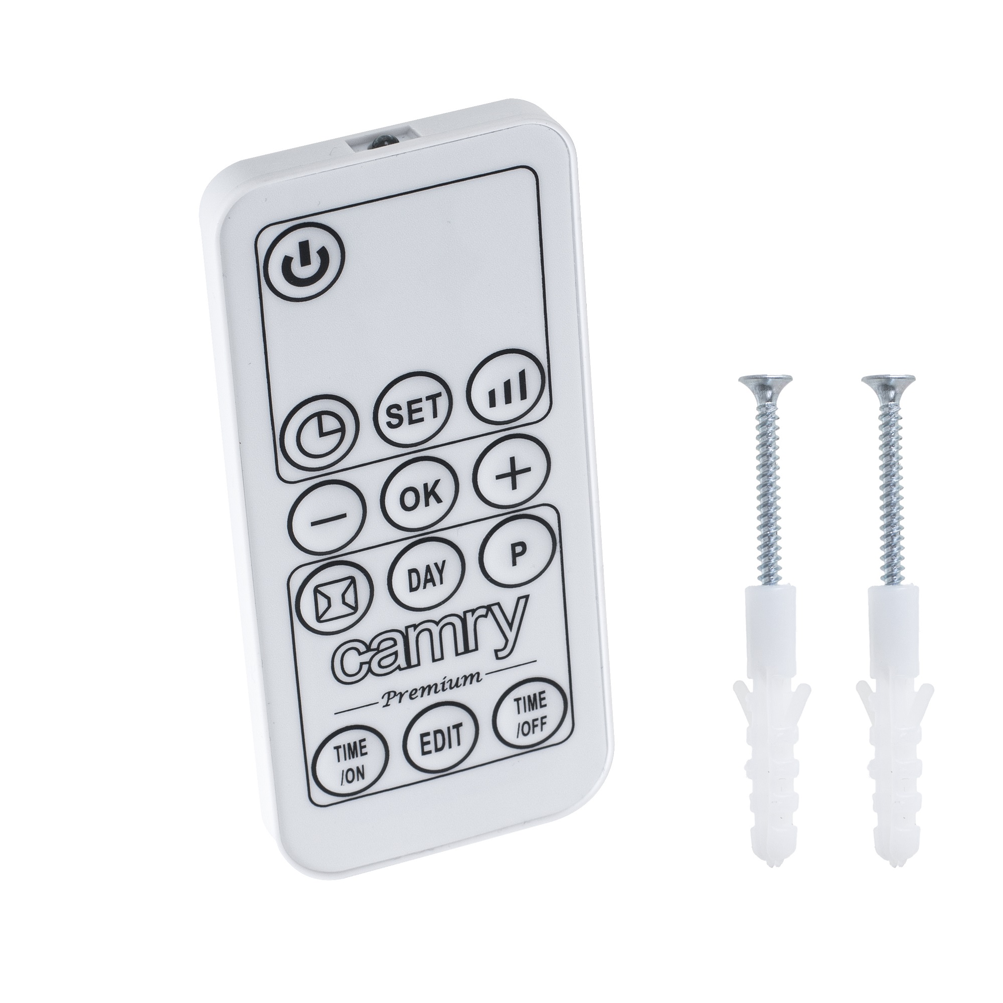 Батарея для ванної кімнати Camry CR 7747 також оснащена зручною вішалкою для рушників. У комплекті ви знайдете гвинти та розпірні дюбелі для монтажу на стіну. Пристрій оснащений захистом від перегріву. У комплекті є пульт дистанційного керування.