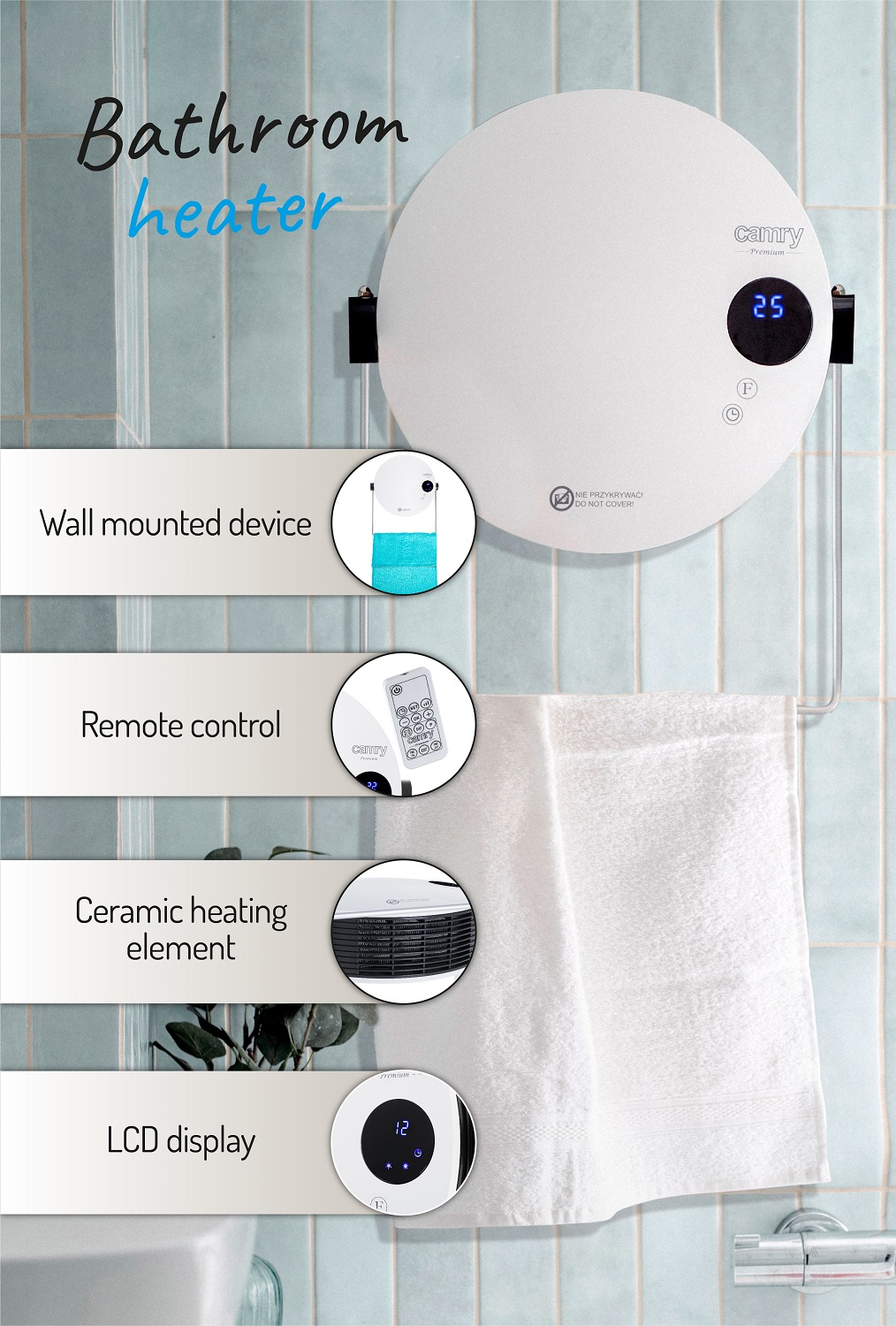 Обігрівач для ванної Camry CR 7747 - це ідеальне поєднання сучасного дизайну та надійної ефективності, які вам потрібні у вашій ванній кімнаті. Цей унікальний продукт, що кріпиться на стіну, забезпечить вам приємне тепло в будь-який момент, підвищуючи комфорт вашої щоденної рутини. Розширені функції цього обігрівача дозволяють точно налаштувати температуру та графік роботи відповідно до ваших індивідуальних потреб. Два рівні нагрівання - 1400 Вт і 2000 Вт - дозволяють вибрати відповідну потужність, забезпечуючи швидке нагрівання приміщення навіть у найхолодніші пори року. РК-дисплей, розташований на передній панелі обігрівача, дозволяє легко контролювати налаштування та поточну температуру.
