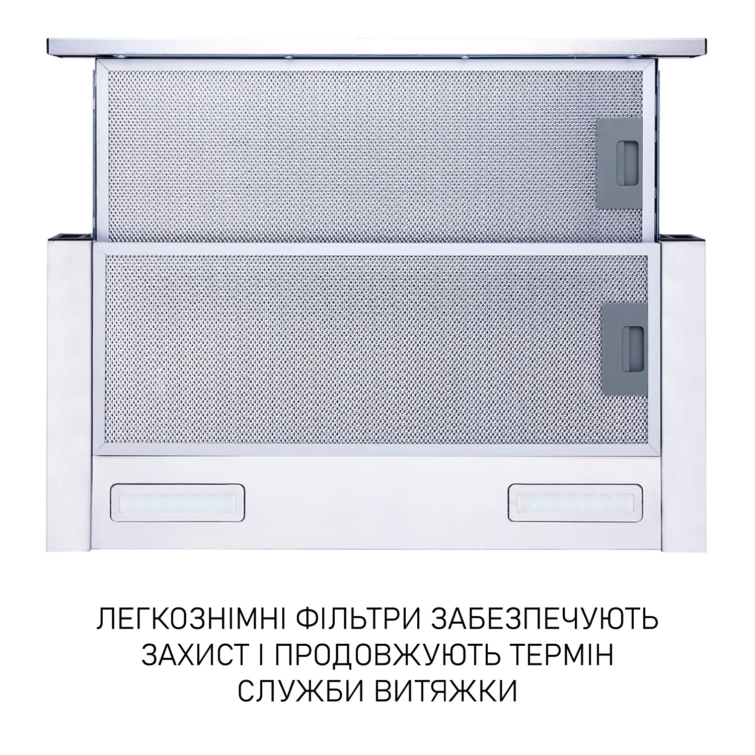 Кухонна витяжка обладнана двома алюмінієвими жировими фільтрами, що складаються з трьох шарів. Вони забезпечують надійний захист двигуна та інших деталей пристрою від потрапляння жиру та випарів.