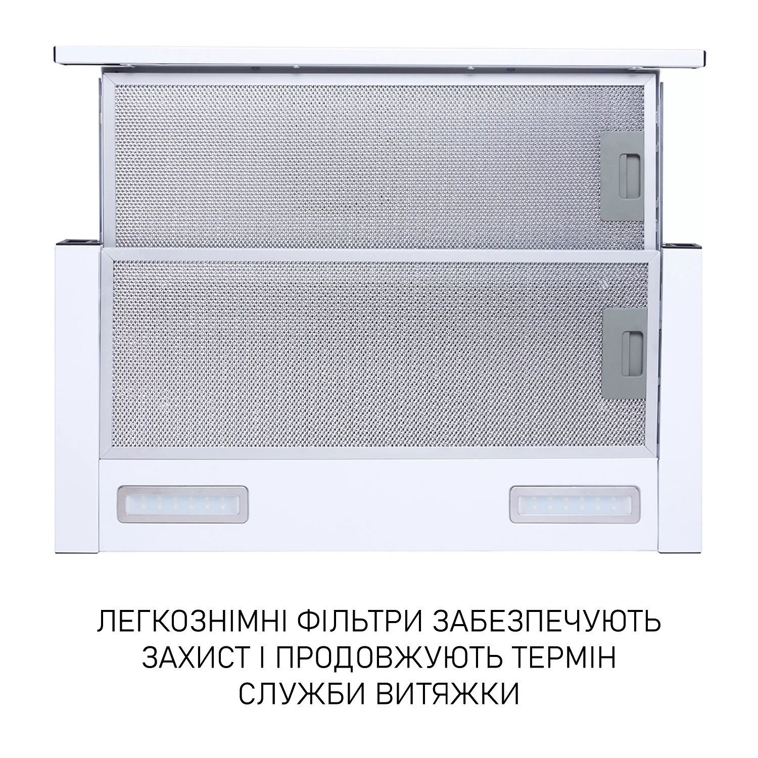 Кухонна витяжка обладнана двома алюмінієвими жировими фільтрами, що складаються з трьох шарів. Вони забезпечують надійний захист двигуна та інших деталей пристрою від потрапляння жиру та випарів.