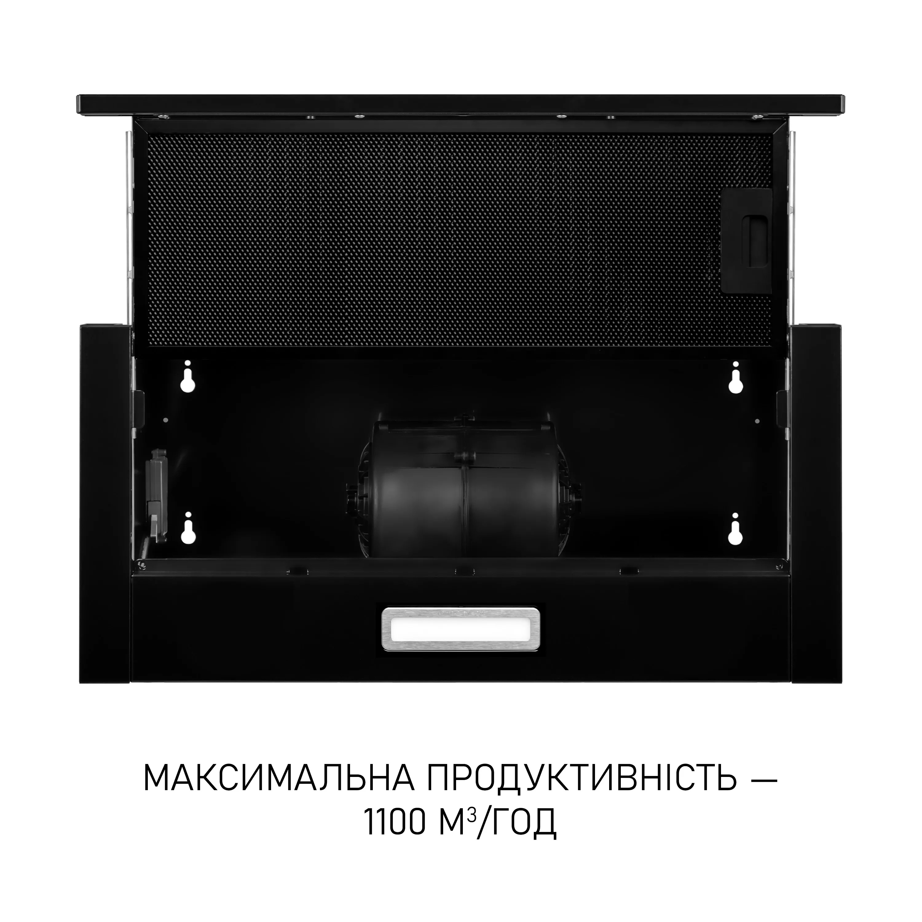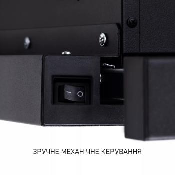 Витяжка оснащена зручним механічним слайдером, розташованим на передній панелі під висувною телескопічною частиною. Це дозволяє обирати одну з трьох швидкостей без зайвих зусиль, навіть якщо руки зайняті в процесі приготування.
