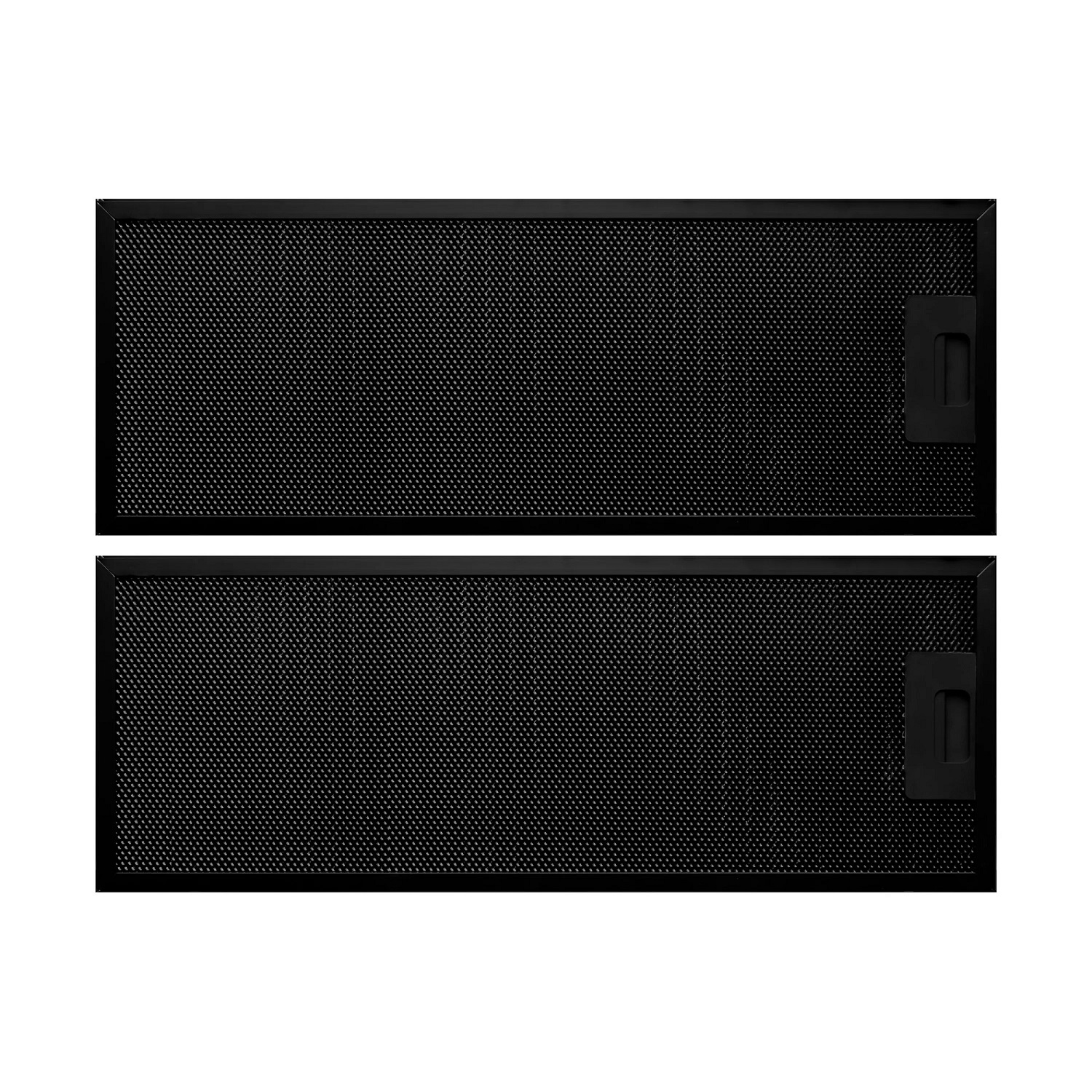 Стандартний комплект містить 2 п’ятишарові алюмінієві жирові фільтри, які ефективно вловлюють частинки жиру та пари під час приготування. У режимі рециркуляції рекомендовано встановити вугільний фільтр, який додатково очищує повітря від запахів. Обидва типи фільтрів можна легко замінити самостійно, не використовуючи інструменти.