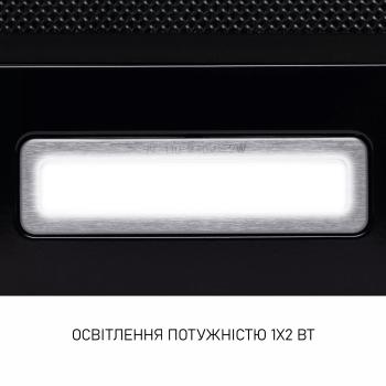 У витяжці встановлено два енергозаощадні LED-світильники по 1 Вт кожен, які забезпечують яскраве, рівномірне освітлення варильної поверхні. Колірна температура світла наближена до денного, що зменшує навантаження на очі при тривалому готуванні. Світлодіоди мають тривалий термін служби, не нагріваються та не потребують заміни протягом багатьох років.