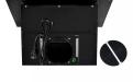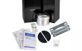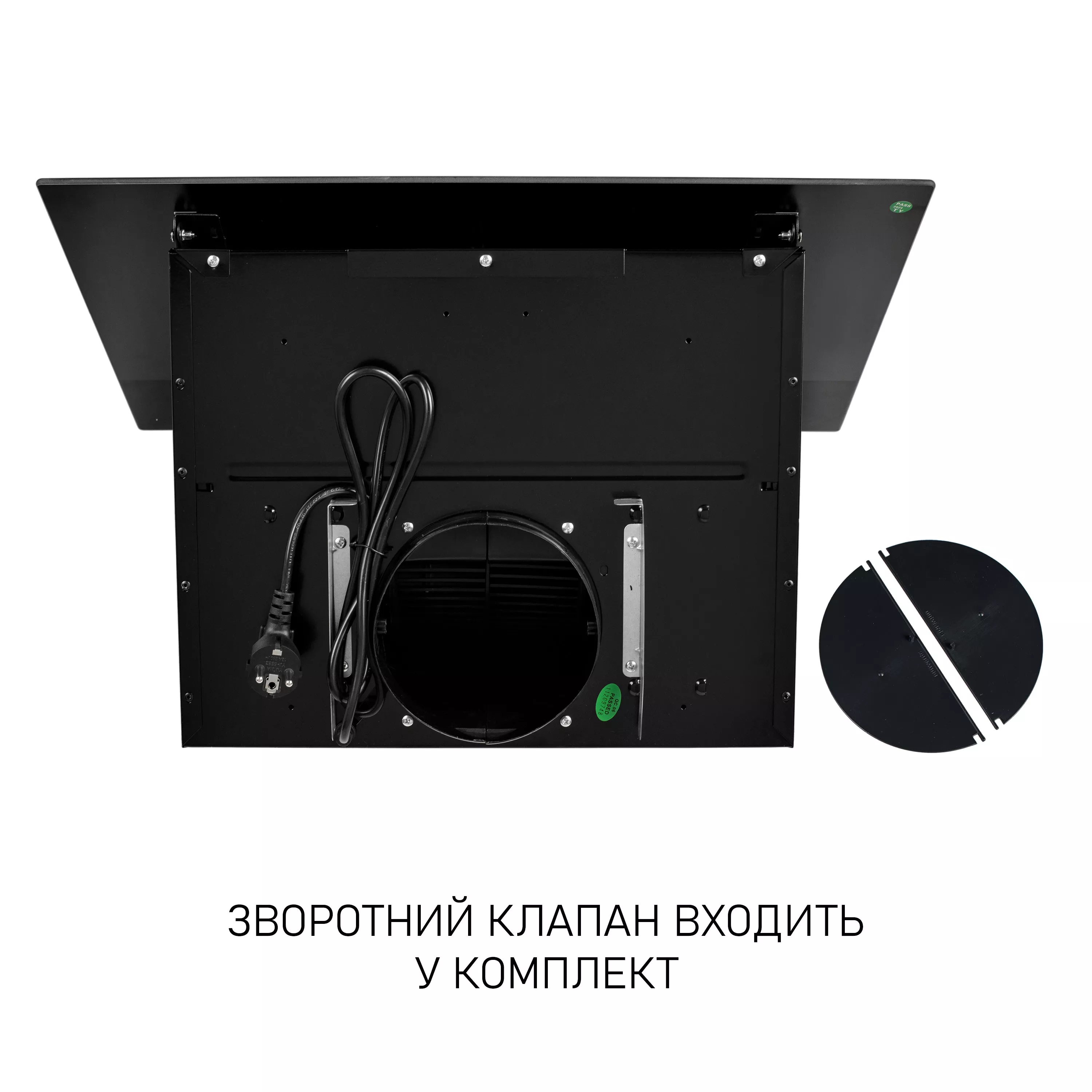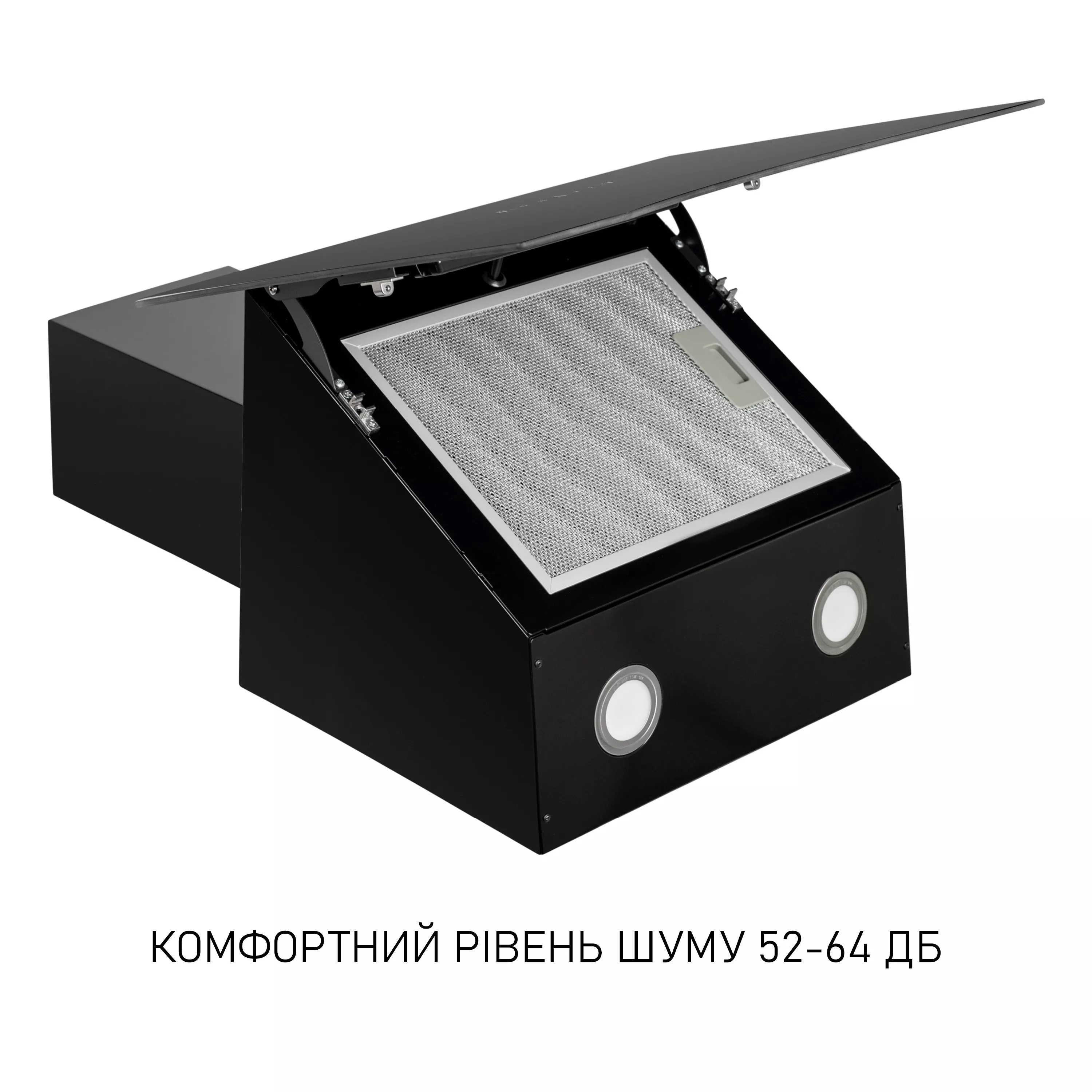 Фільтр захований за відкидною декоративною скляною панеллю чорного кольору. Таке рішення виглядає стильно та мінімалістично, завдяки чому пристрій чудово інтегрується в інтер'єри з темними акцентами, не створюючи зайвих контрастів.