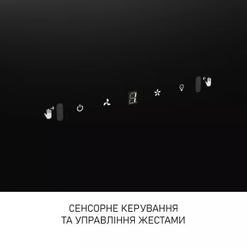 Легкість використання пристрою забезпечує інноваційна технологія управління жестами. Одним змахом руки можна перемкнути швидкість і увімкнути/вимкнути освітлення. Це виключає необхідність мити руки, щоб торкнутися кнопок. Однак для додаткової зручності витяжка обладнана і сучасною сенсорною панеллю.