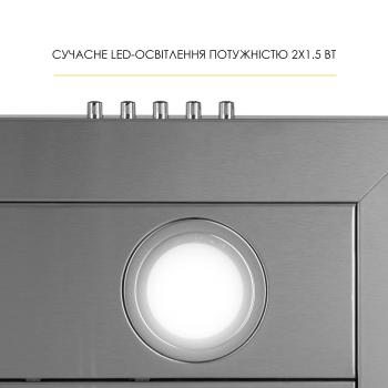 Сучасне освітлення представлене двома LED-лампами потужністю 1,5 Вт кожна. Яскраве LED-освітлення забезпечує додаткове підсвічування робочої зони, роблячи процес приготування їжі ще більш комфортним. Робочий ресурс світлодіодів в рази більший, ніж у звичайних ламп, а споживання енергії є мінімальним. Окрім того, світлодіоди досить витривалі при активній експлуатації.
