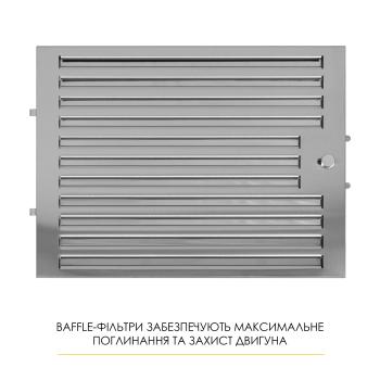 Особливість моделі WEILOR MIST WTX 68 полягає в тому, що ця кухонна витяжка обладнана жировими фільтрами Baffle, які розташовані на нижній частині корпусу, безпосередньо над варильною поверхнею. Baffle фільтри, виготовлені з нержавіючої сталі, працюють, змушуючи насичене жиром повітря швидко і неодноразово змінювати напрямок, коли воно піднімається через фільтр, краплі жиру конденсуються в металевій лопасті, а потім зливаються в лоток фільтра.