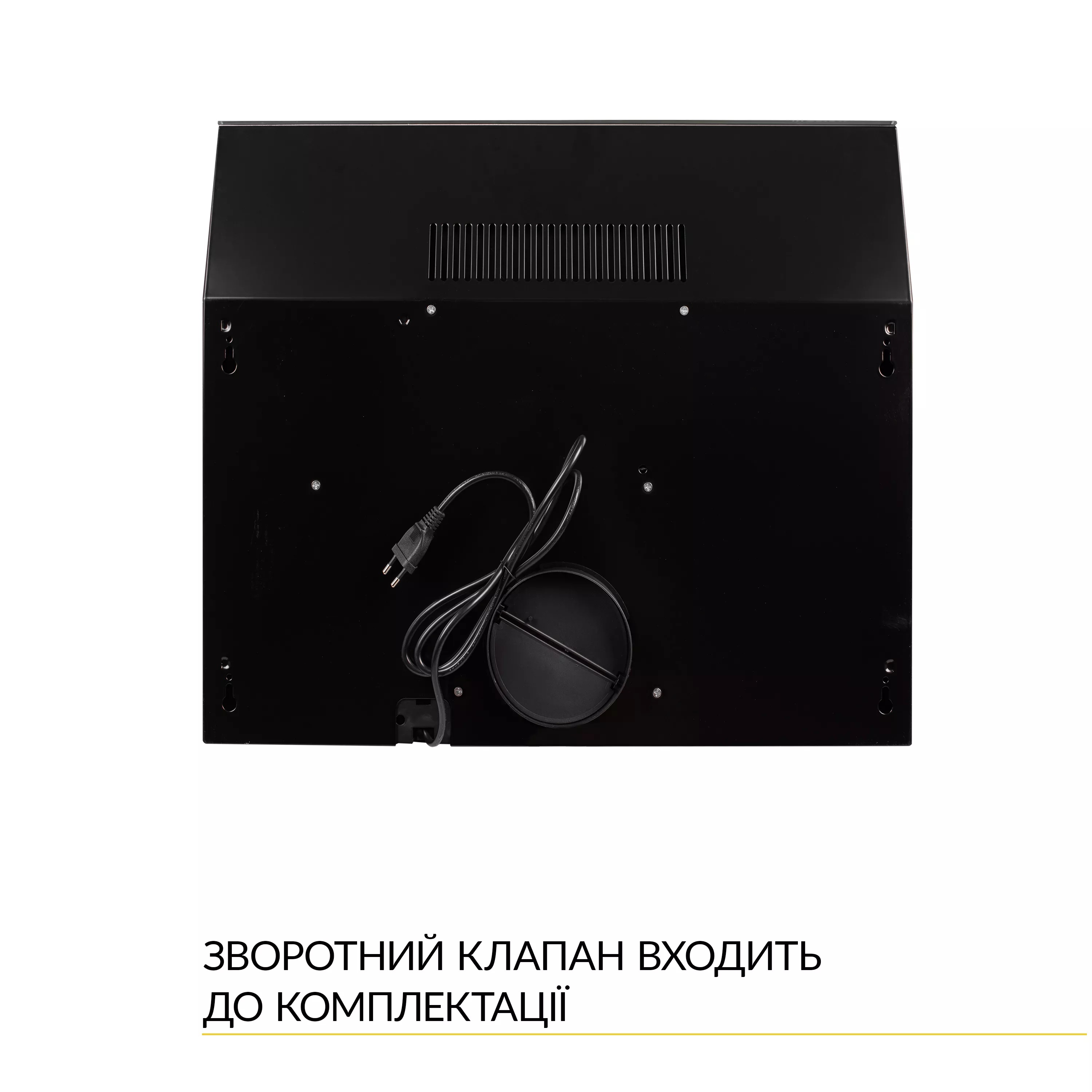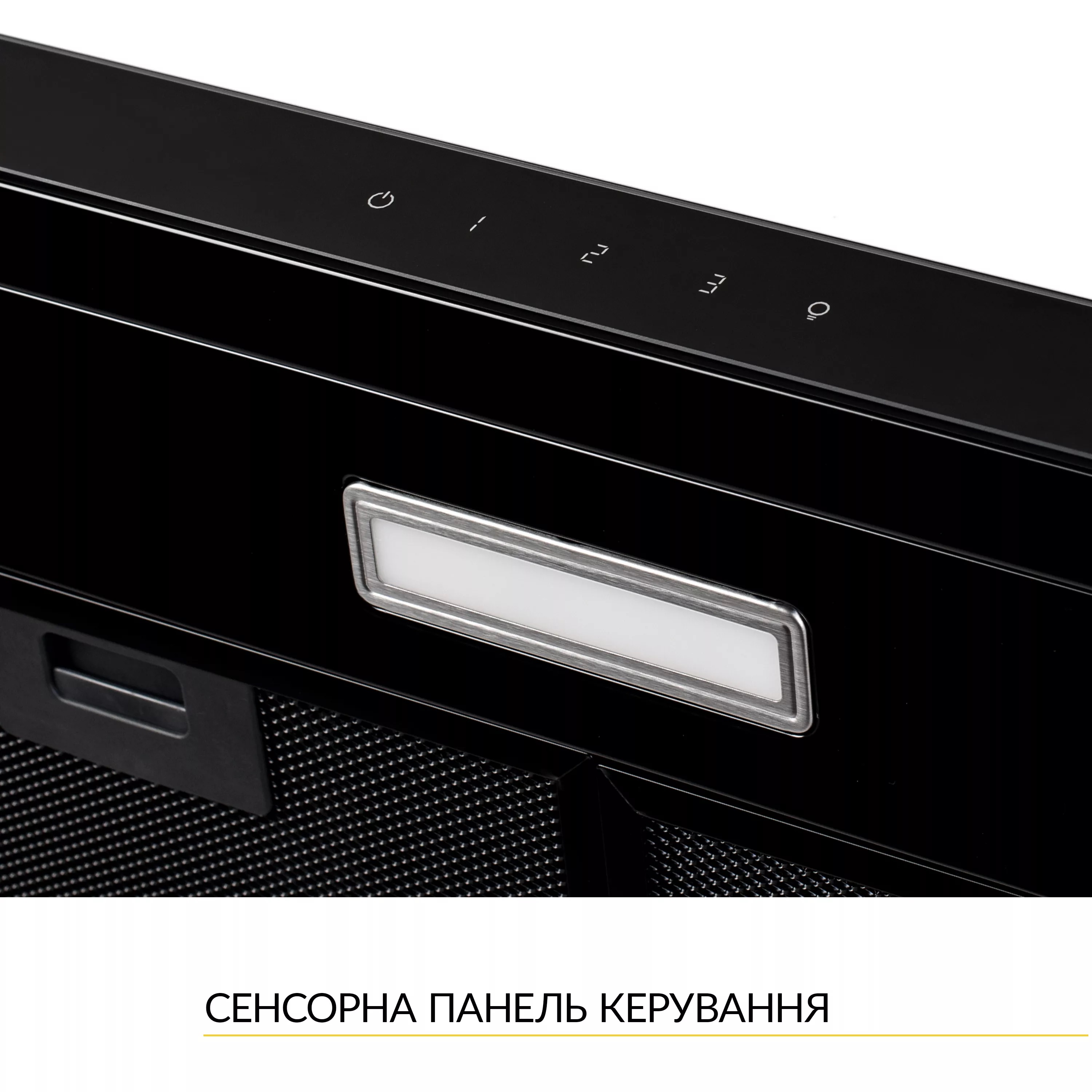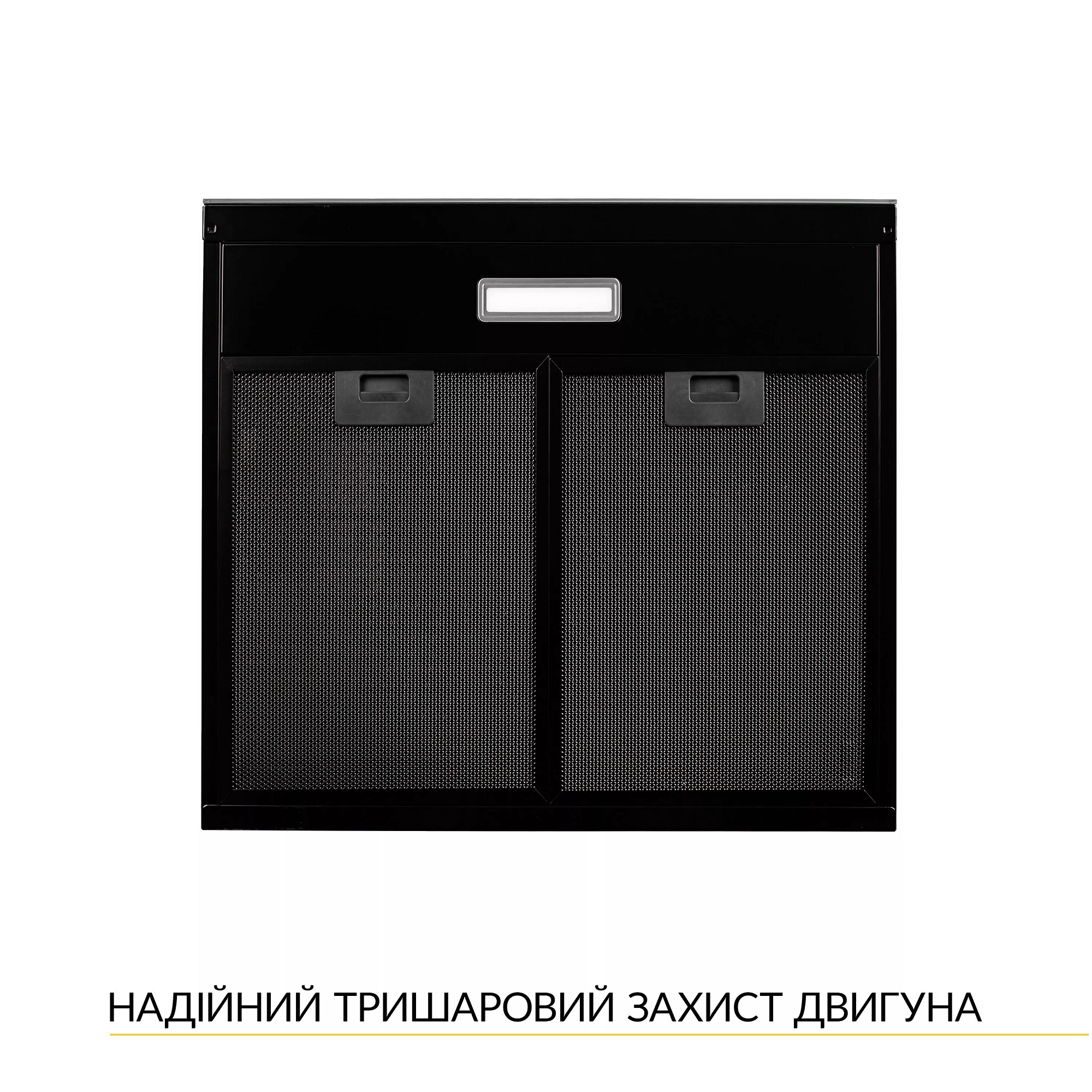Для створення абсолютної гармонії в інтер'єрі кухні, ця модель витяжки обладнана фільтрами того ж кольору, що й корпус. Чорні фільтри ідеально поєднуються з дизайном пристрою.