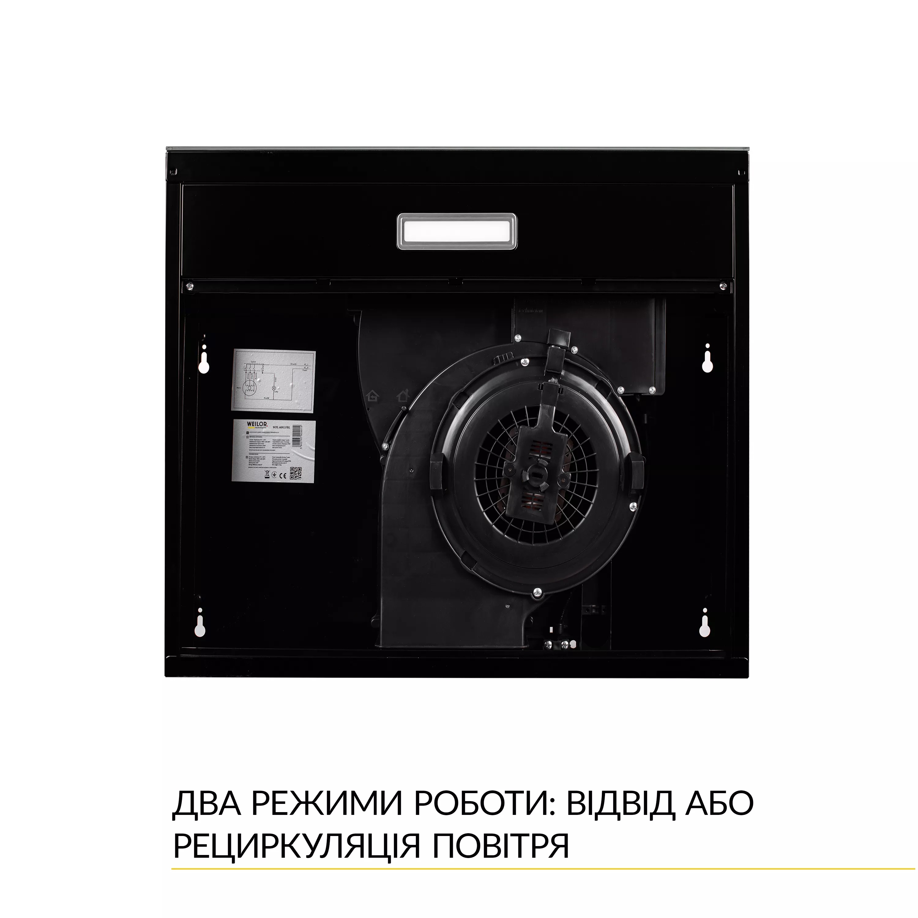 Плоска витяжка WEILOR WPL 5092 FBL ефективно справляється з покладеним на неї завданням. Вона швидко усуває запахи, випари і кіптяву, дбаючи про чистоту повітря на кухні і, отже, про ваше здоров'я. У витяжці встановлений двигун оптимальною потужністю 80 Вт, що забезпечує продуктивність до 550 м3/год. Цього достатньо для якісної вентиляції повітря на кухні невеликої площі.