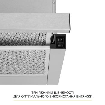 Виробник передбачив 3 швидкості роботи для найбільш раціонального використання витяжки. Це дозволяє очищувати повітря з необхідною інтенсивністю, щоб заощаджувати електроенергію.