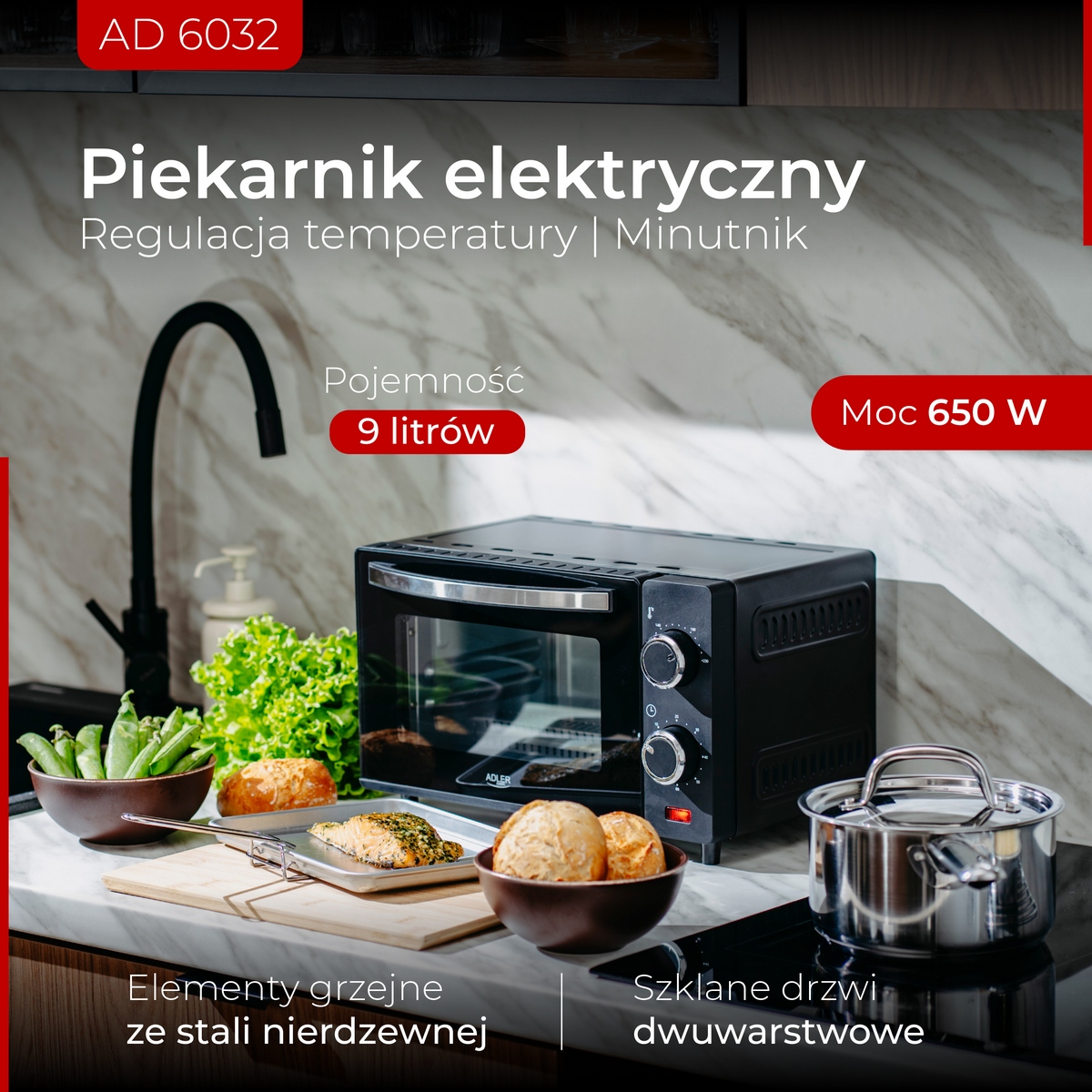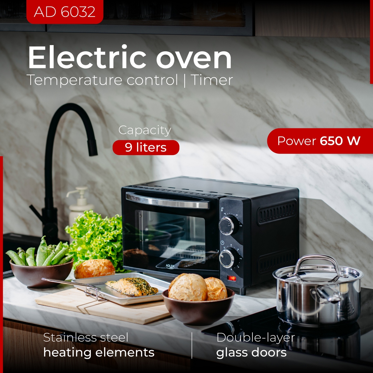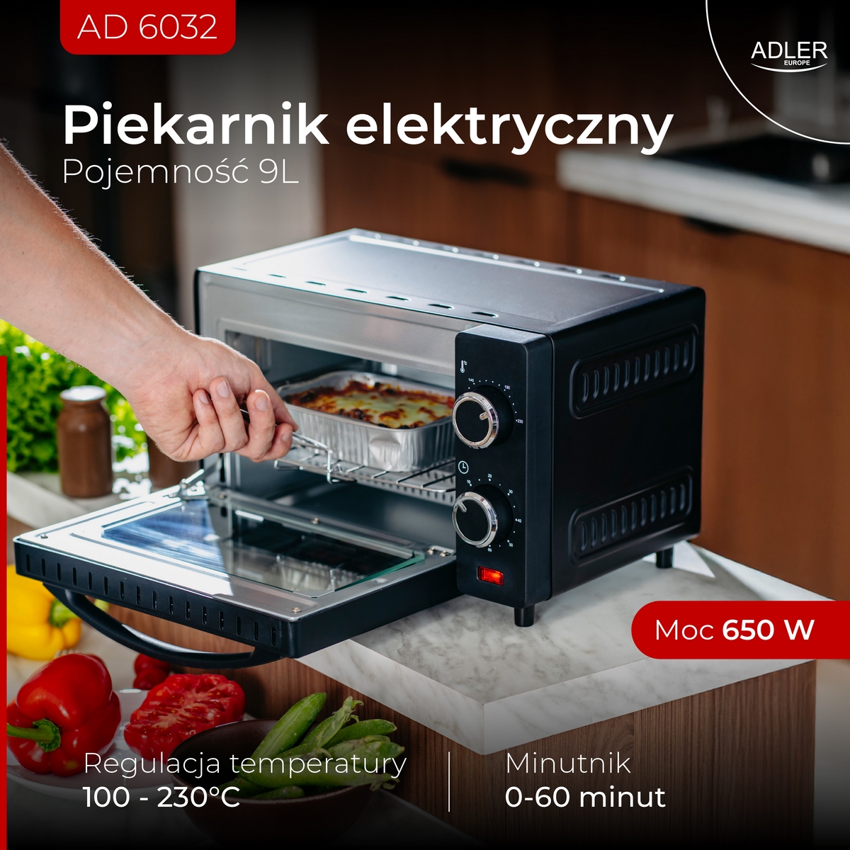Огляд Електрична духовка Adler AD 6032 9 л | Регулювання температури | Таймер |