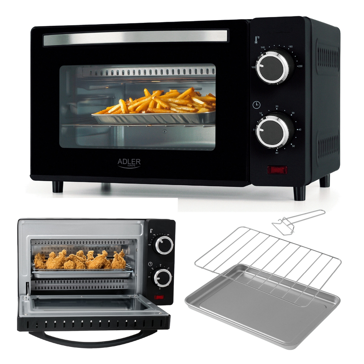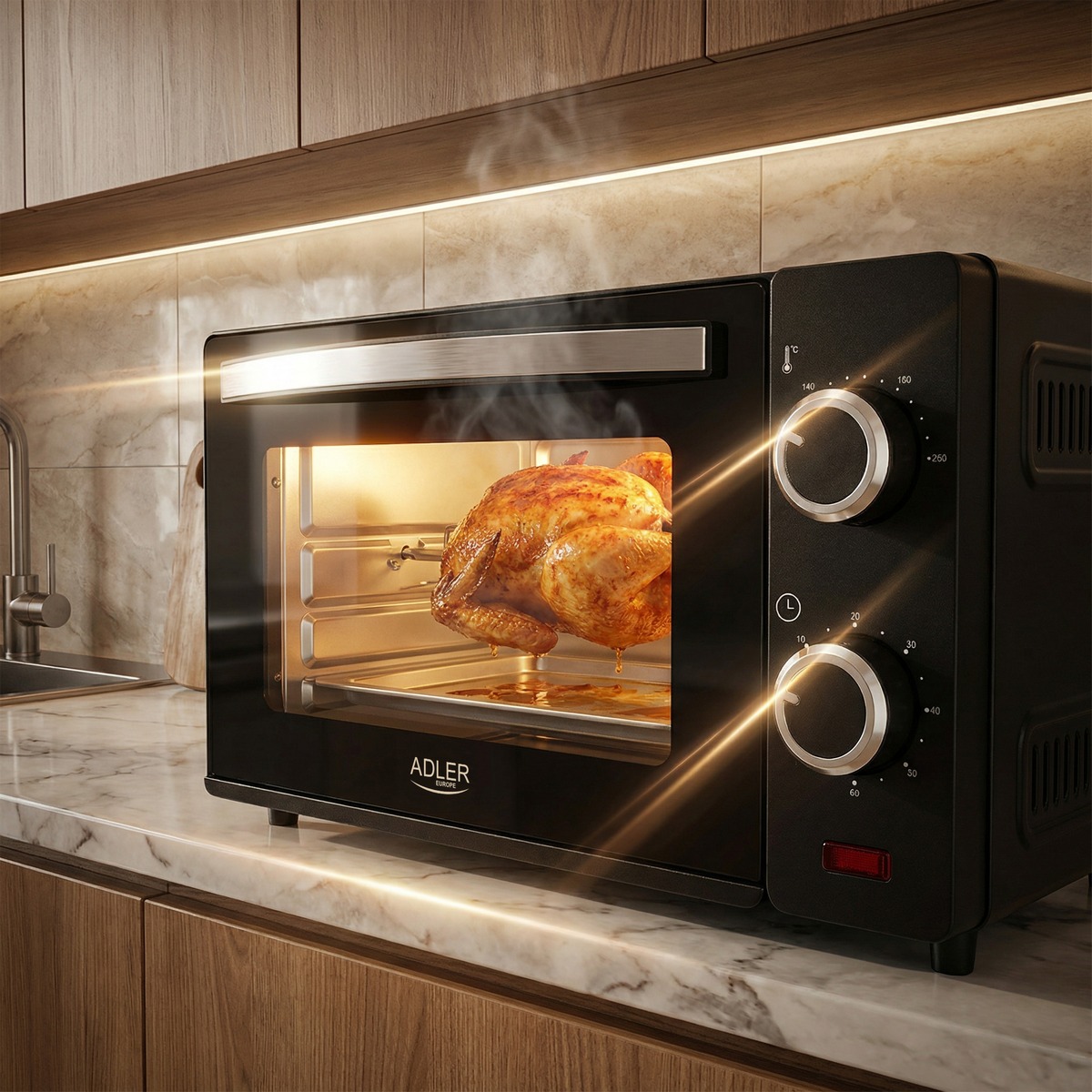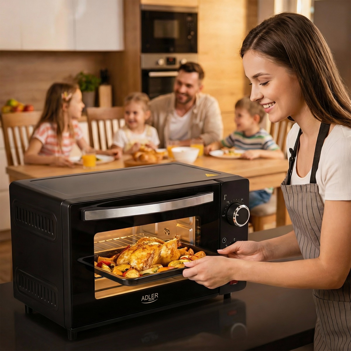 Запікайте, підігрівайте та запікайте з легкістю завдяки Adler AD 6032 - компактній та ефективній електричній духовці, яка пропонує всі основні функції в елегантному чорному корпусі. Ідеально підходить для невеликих кухонь, студентських квартир або як додаткова духовка для швидких страв та закусок.